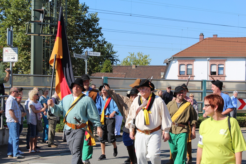 Am Sonntag den 25.09.2016 fand der Festzug zur Oftersheimer 1250-Jahrfeier statt. Bei traumhaftem Wetter mit Sonnenschein säumten viele tausende Zuschauer aus Oftersheim und den Nachbargemeinden die Festzugsroute. Auch die TTG Oftersheim nahm als Freischärler-Gruppe daran teil. Die Freischärler hatten in den Jahren 1848/49 zum Ziel ihres Kampfes die deutsche Einheit.